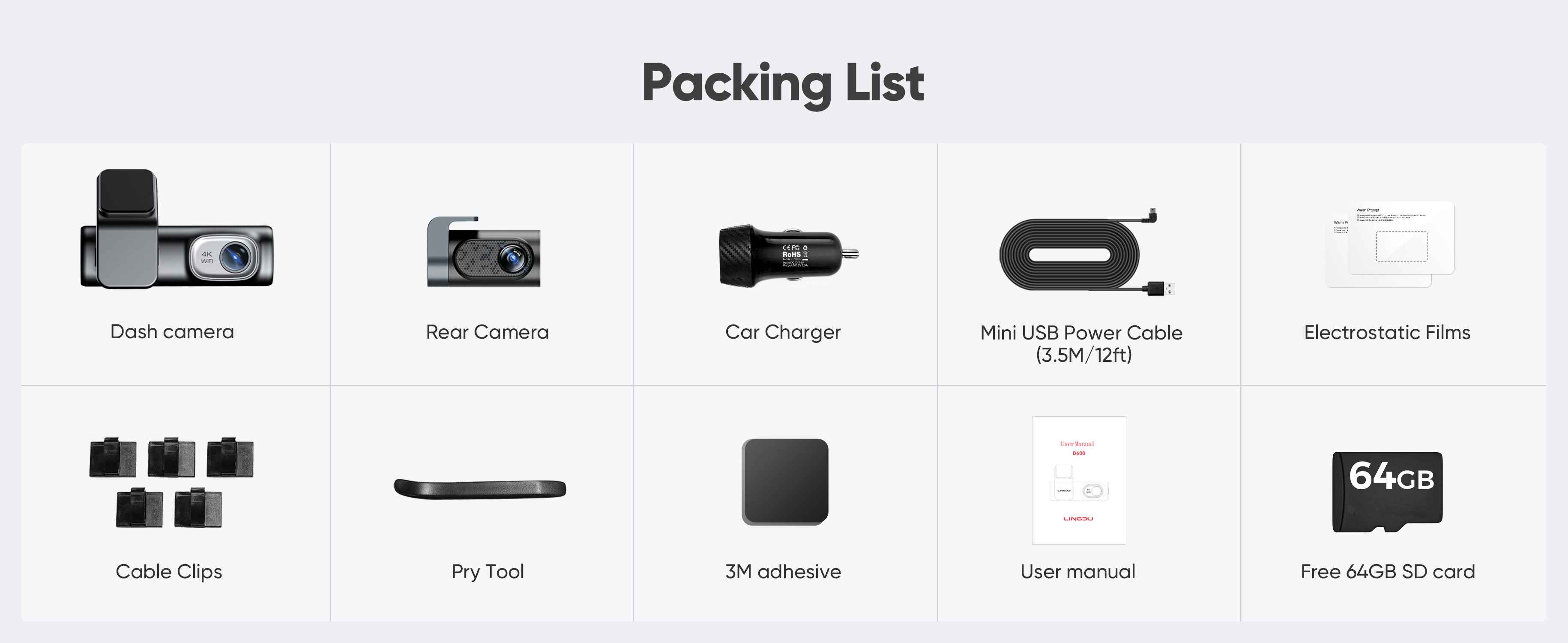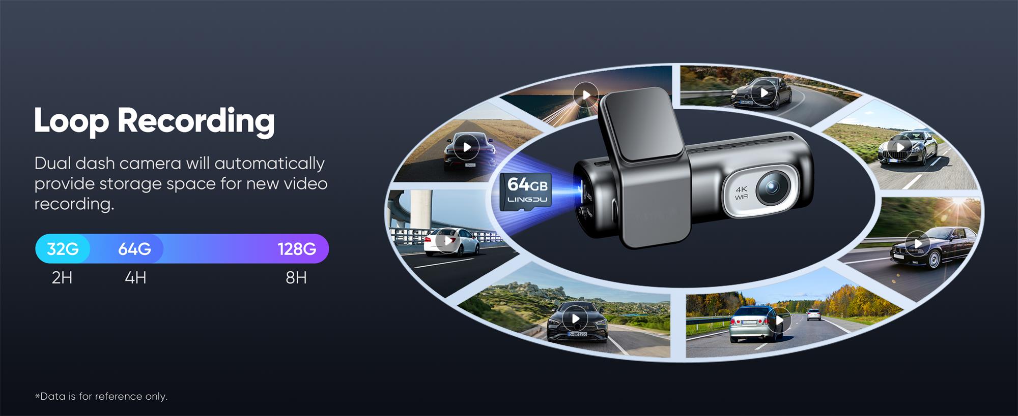 Max support 128GB (U3 Speed, only one 64GB microSD in the dash cam) |
