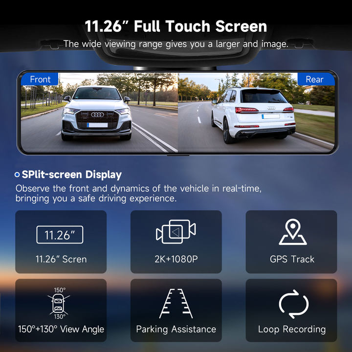 | Solution | NT96565+ Front 2K QHD 2560*1440P/30FPS+Rear FHD 1920*1080P/30FPS+11.26 inch+2.5D TP+ GPS +WiFi | |