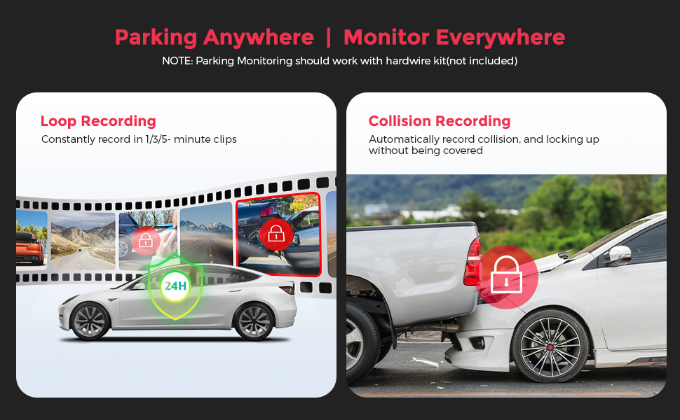 | Parking Monitor | Support, need to connect mini-USB 3-leadhard-wire kit (Not including) |